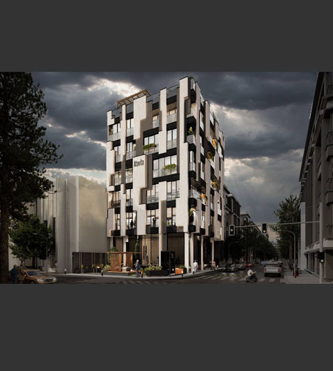 0 طراحی پلان و نمای ساختمان وستا واقع در عظیمیه کرج
